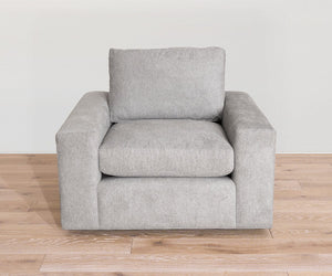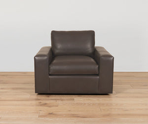Embrace an all-star seating experience with the Abele Swivel Chair, featuring plush, down blend-filled cushions and your choice of ultra-soft fabric or luxe leather upholstery. The convenient swivel functionality and a versatile silhouette enhance any setting, from modern to rustic—while pairing perfectly with other pieces in the Abele Collection for a fresh, contemporary aesthetic. Available for custom order. Made in the USA.