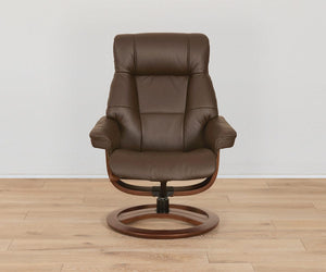 Between the buttery soft leather upholstery and comfort-enhancing features, the Aksel Recliner & Ottoman will be your go-to spot after a long day. Dynamic lumbar support adapts to your body, while adjustable head-and-neck support and a full-reclining feature let you really stretch out and relax. Plus, an ultra-smooth swivel function gives you total freedom of movement, whether you’re socializing or just enjoying family time. Want the perfect fit? The Aksel is available to custom order in a variety of sizes so you can find the one that suits your needs.