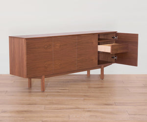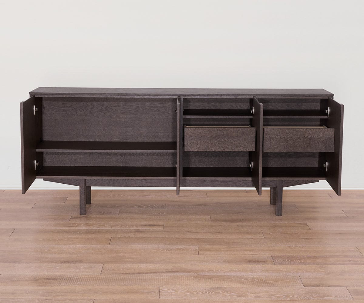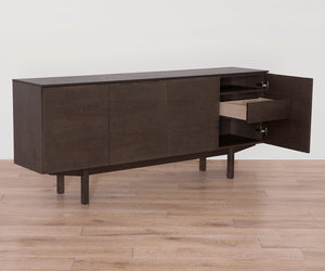 Crafted from solid oak and oak veneer, the Aleid Sideboard is a study in quiet sophistication with a modern edge. Behind its sleek exterior, ample storage keeps essentials neatly tucked away, while the generous surface area offers room to showcase your favorite curios, serveware and more.