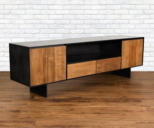 With its modern, mixed-material design, the mid-century Andor Media Stand will make a statement in any setting. The matte black metal frame is warmed by reclaimed teak doors with rustic-inspired wear marks, so it will instantly elevate your space, while remaining versatile enough for most decor styles. Mix and match it with other items in the Andor Collection for a complete, heirloom-quality display.