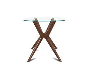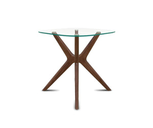 Crafted from solid European beech wood, the Ardal End Table is finished with a rounded glass top which gives an unobstructed view of the artistically-angled legs. A stylish addition to any room, the design of this expressive piece defines a space by infusing it with a sense of life and movement. Showcasing a blend of warm mid-century wood tones and clean contemporary glass, this dining table can be easily styled in a variety of settings.