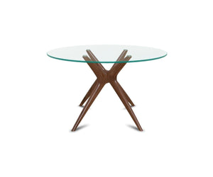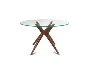 The Ardal Round Coffee Table features a round glass top which gives an unobstructed view of the artistically-angled legs. Showcasing a blend of warm mid-century wood tones and clean contemporary glass, this dining table can be easily styled in a variety of settings. Crafted from solid European beech wood, the design of this expressive piece defines a space by infusing it with a sense of life and movement.