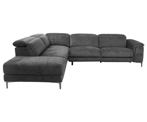 Between the luxe charcoal shade and dynamic power motion, the Aria Power Sectional is a gamechanger for any space and decor style. Plush fabric, a deep seat and adjustable headrests deliver lounge-all-day comfort, while airy metal legs with a modern chrome finish complete the contemporary look. All at an exceptional value.
