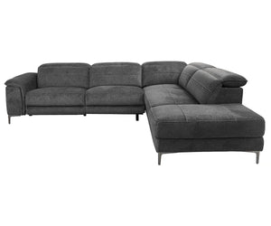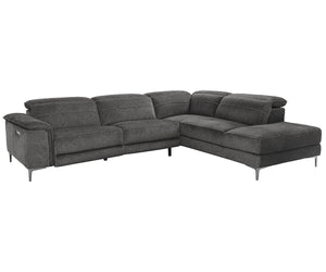 Between the luxe charcoal shade and dynamic power motion, the Aria Power Sectional is a gamechanger for any space and decor style. Plush fabric, a deep seat and adjustable headrests deliver lounge-all-day comfort, while airy metal legs with a modern chrome finish complete the contemporary look. All at an exceptional value.