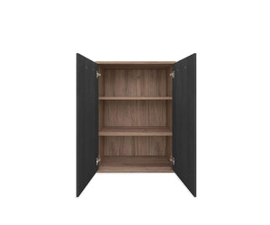 The Arren Low Bookcase is an ideal addition to any office, be it the one you’ve created at home or your office building. Able to hold your needed binders or other records, this low shelf can also be used to encourage a decorative display, thus elevating the look and feel of your space. Made in Italy from eco-friendly materials, this piece is crafted from durable melamine, and was artistically designed to echo the look of real wood. Enclose your belongings safely behind matte black melamine doors, and ensure that any belongings stored on your bookcase are kept both safe and clean. A perfect complementary piece for the rest of the Arren Collection, the walnut tones of the Arren Low Bookcase cement the rustic motif of your space, giving your room a feeling of warm, modern professionalism. Made from 100% recycled materials, this piece was deliberately produced with zero environmental impact.