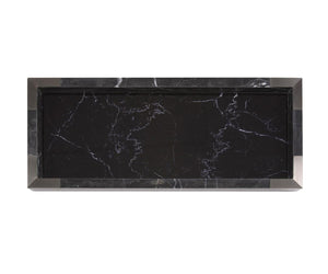 With its classic shape fashioned from contemporary materials—like black marble trimmed in brushed titanium—the Black Mirrored Marble Tray will make a bold statement in any setting.