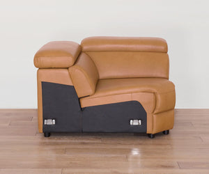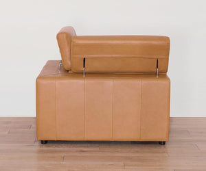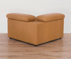 Designed for sink-in comfort and ultimate versatility, the modular Brix Collection lets you create a custom configuration for your space, while ultra-plush seating and buttery-soft leather in a buckskin hue enhance any setting. The corner wedge features manual headrests and a minimalist silhouette for maximum comfort without the bulk.