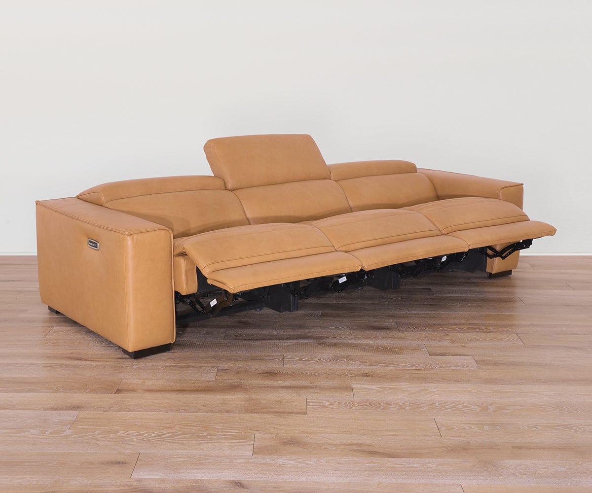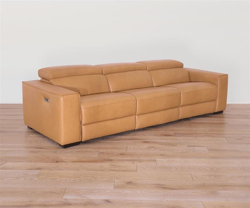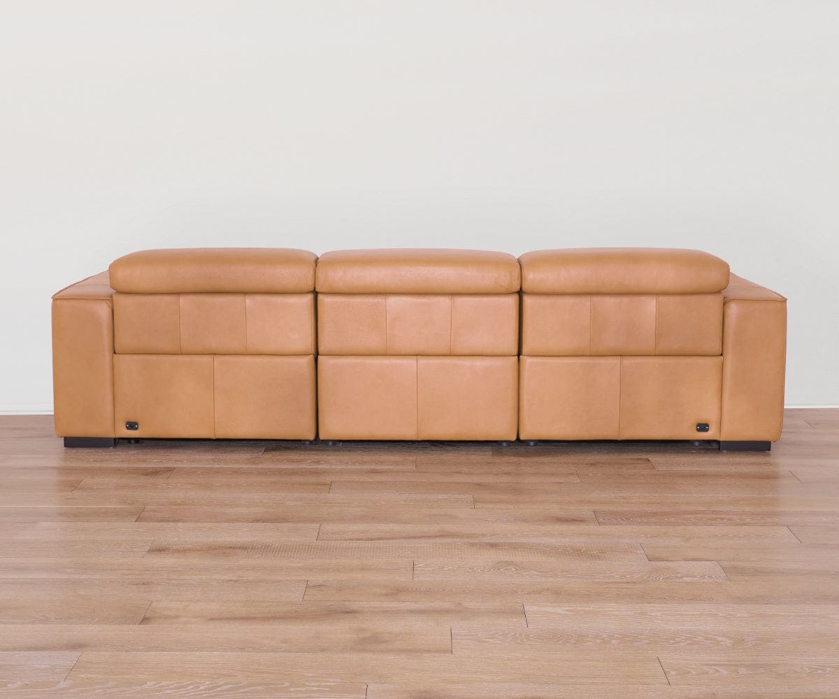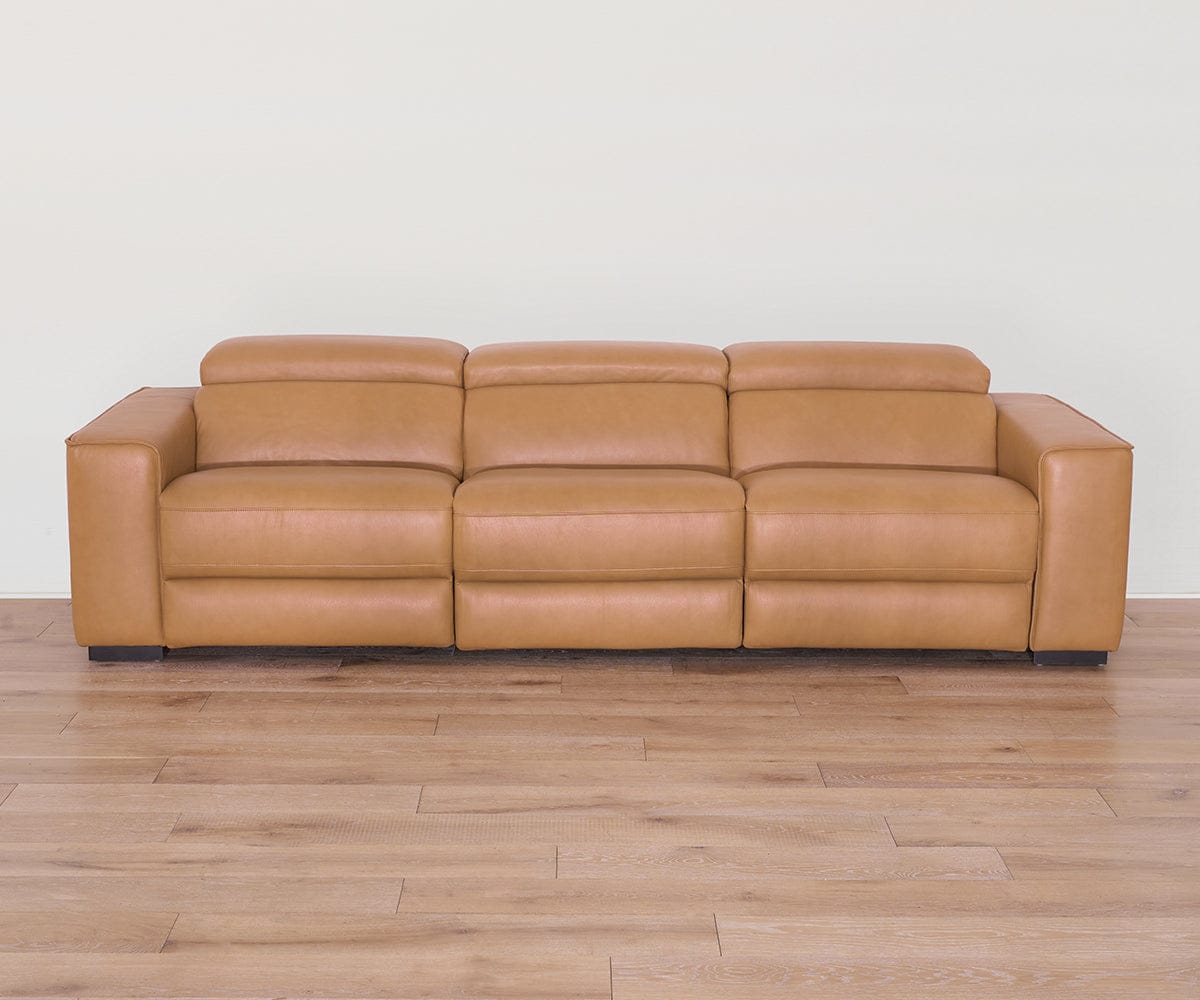 Designed for sink-in comfort and ultimate versatility, the modular Brix Collection lets you create a custom configuration for your space, while ultra-plush seating and buttery-soft leather in a buckskin hue enhance any setting. The modular sofa includes the Power Recline Chair and Power Recliner for personalized comfort and a minimalist silhouette.