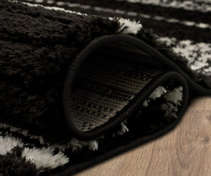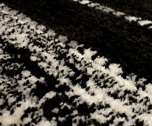 Charcoal Striped Geometric Area Rug with Textured Pile