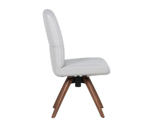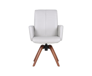 The Elyse 10000 Dining Chair features a swivel base and slim profile for easy maneuverability during everyday meals and special occasions. A rich, walnut-stained wood base and supple leather create a modern, versatile aesthetic, while dynamic lumbar support and the option to add arms complete the seating experience. Pair it with the Elyse Arm Kit for a custom upgrade.