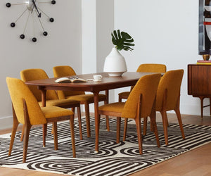A timeless mid-century profile gives the Hendrick Dining Table an airy, elegant appearance that will work seamlessly with nearly any decor style. The roomy rectangular shape and durable American poplar construction are ideal for family meals and friendly gatherings, while classic tapered legs finished with solid brass caps add a classic touch.