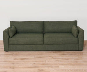 A minimalist silhouette and retro-inspired hue give the Katrina Sofa a sleek, vintage vibe that adds instant character to your space. It’s also versatile enough to work with a variety of decor settings, from classic to contemporary, offering just the right pop of personality. Available for custom order.