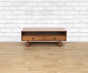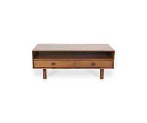 The Leevi Coffee Table offers a unique spin on a classic mid-century style that will add instant intrigue to your living room aesthetic. Crafted from solid acacia wood, the table features a beautiful finish, antiqued brass-toned drawer pulls and a distinct silhouette—all at an incredible value. Mix and match it with other pieces in the Leevi Collection to create a stylish, complementary set.