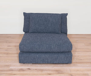 Part of the modular Marvi Collection, the Marvi Armless Chair features a deep seat and feather-blend cushions—including a throw pillow—in a rich, elegant shade that will enhance nearly any setting, from contemporary to classic. The Marvi Collection can be arranged in multiple ways to create configurations for small or large spaces and is available for custom order. Made in the USA.