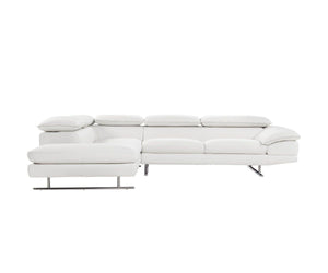 Made in Italy, the Mauro Leather Sectional makes a modern statement in any space. Featuring durable metal legs for an elevated, sleek and airy look, this sectional offers ultimate comfort in the form of plush cushions enveloped in rich leather upholstery. Ratcheting headrests allow for various moods – simply move up for extra support while watching TV, or down for a more conversational feel. Elastic webbing suspension in the seats ensures lasting comfort.