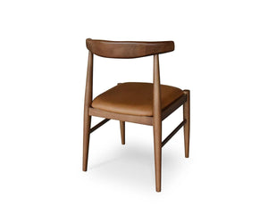 The Miles Dining Chair features a style that is inspired by Danish modern design. Tapered wooden legs and an elegantly curved back are eye-catching components to the solid wooden frame. A comfortable leather seat is the finishing touch for this chair: natural characteristics in this hide change over time, making each piece a one-of-a-kind.