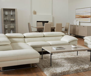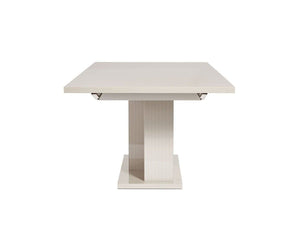 Made in Italy, the Niccola Extension Table is the perfect piece to luxuriously streamline your home dining experience. Pinstriped leg detailing adds stylish texture and an air of modern contemporary glamour to this piece, while a high-gloss finish cements the look. A stylishly segmented pedestal foot allows ample room for chairs to tuck beneath this table, while hidden extension leaves are at your beck and call to elongate your dining space as needed.