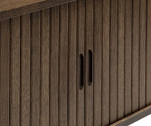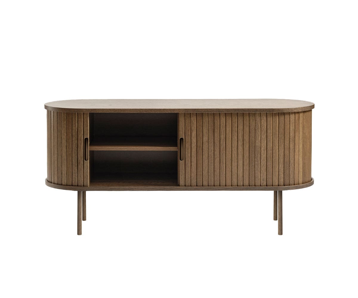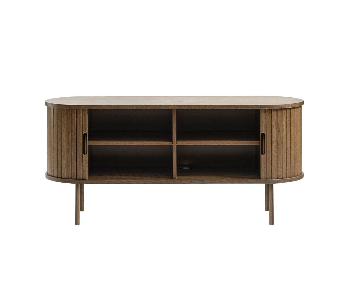 The Orella Media Stand comes ready to store all your media essentials in style. From games and consoles to remote controls and more, this media stand offers plenty of storage and a spacious surface to hold a TV; a tambour-paneled base completes the look. A perfect fit for small spaces, the Orella Collection is a welcome addition to any modern or contemporary space. Featuring eye-catching tambour paneling, this collection makes a welcome style statement while maintaining its useful functionality.