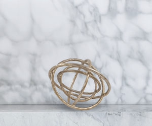 Inspired by the rings of Saturn, the Planetary Rings Sculpture is cast in aluminum and finished in an antiqued brass for a unique, highly versatile piece.