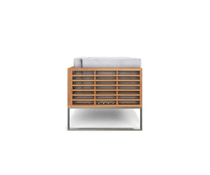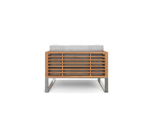 The Playa Mar Outdoor Armchair is a seamless addition to any outdoor space, and inspires thoughts of quality time spent unwinding at home. Featuring an attractive design of loosely slatted acacia wood, this durable chair showcases weather-resistant upholstered cushions, and is anchored by stainless steel legs.