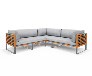 A seamless addition to any outdoor space, the expansive, comfortable Playa Mar Sectional inspires thoughts of quality time spent unwinding at home. Designed with outdoor living in mind, this sectional features weather-resistant cushions complete with easily-cleaned upholstery. The loosely-slatted frame of this piece is anchored both by durable stainless steel legs and solid acacia wood, rendering it a perfect piece to weather the elements.