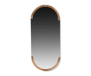 A minimalist silhouette punctuated by parotta wood moons gives this floor-length mirror a clean, elegant look that complements any decor style. Ideal for adding depth and functionality to any space, it will also help smaller rooms feel more spacious while adding visual intrigue to larger areas.