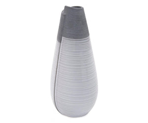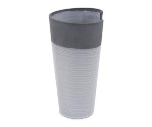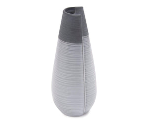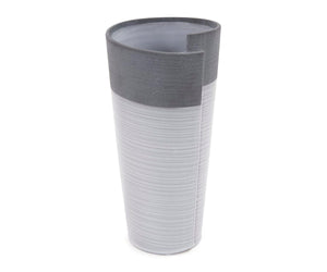A unique asymmetrical shape and contrasting palette give the ceramic Rolled Two Tone Medium Vase a modern, unexpected aesthetic that complements any decor style.