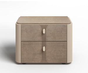 Elegant inlays and softly rounded edges give the Sancia Nightstand a distinct, contemporary style, beautifully anchored by a warm brown finish. Two drawers offer plenty of room for your essentials, while the sophisticated aesthetic complements a variety of decor styles. Pair it with other pieces in the Sancia Collection for a coordinated look.