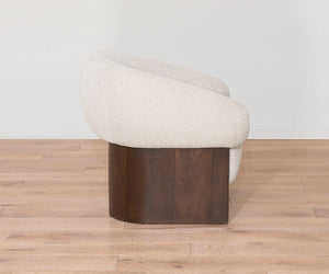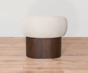 The Stulken Accent Chair combines sculptural curves with a cloud-like seat, all wrapped in luxuriously soft fabric for exceptional comfort. A warm wood base completes a graceful silhouette that’s perfect for bringing instant elegance to any space.