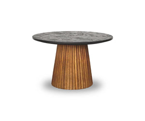 With a fluted, reclaimed teak base and matte black top, the Taavi End Table brings unmistakable panache to classic mid-century modern form. The textured Mortex top is heat resistant and easy to clean, and together with the durable teak, is ready for the rigors of everyday life in a busy home. Please avoid leaving a pot with moisture directly on the tabletop for extended periods of time or use a trivet or other protective barrier. Pair it with other pieces in the Taavi Collection for a versatile look that’s both modern and timeless.
