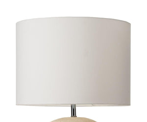 The Textured Clay Lamp features a pleasingly plump ball-shaped base in weathered terracotta. This rough white texture lends itself to any modern space, and can be styled with contemporary decor or as part of a rustic setting. Complete with a fabric lampshade, this classic table lamp stands ready to make your room feel lighter, brighter and warmer.