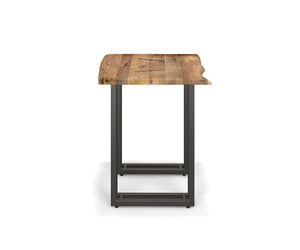Crafted from solid Acacia, the Varden End Table features a unique split top tied together by black wood spines. The rustic look of this piece is enhanced by the table’s natural live edge, a distinctive feature which makes each piece in this collection truly one-of-a-kind. Each leg of the solid steel base is composed of double lines of dark steel, turning this accent table into an intriguing and contemporary accent piece.