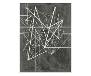 Layered geometric shapes set against a visually textured dark grey canvas give Verticles I a uniquely striking aesthetic.