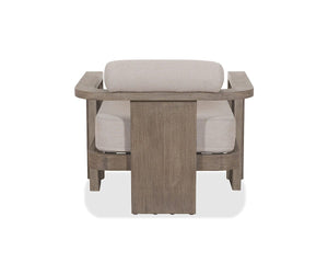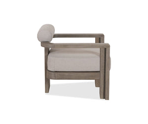 Elevate your patio presence with the Vinna Outdoor Chair, featuring a weather- and UV-resistant rustic eucalyptus frame and durable olefin cushions. Pair it with other pieces in the Vinna Outdoor Collection for a fresh, modern aesthetic.